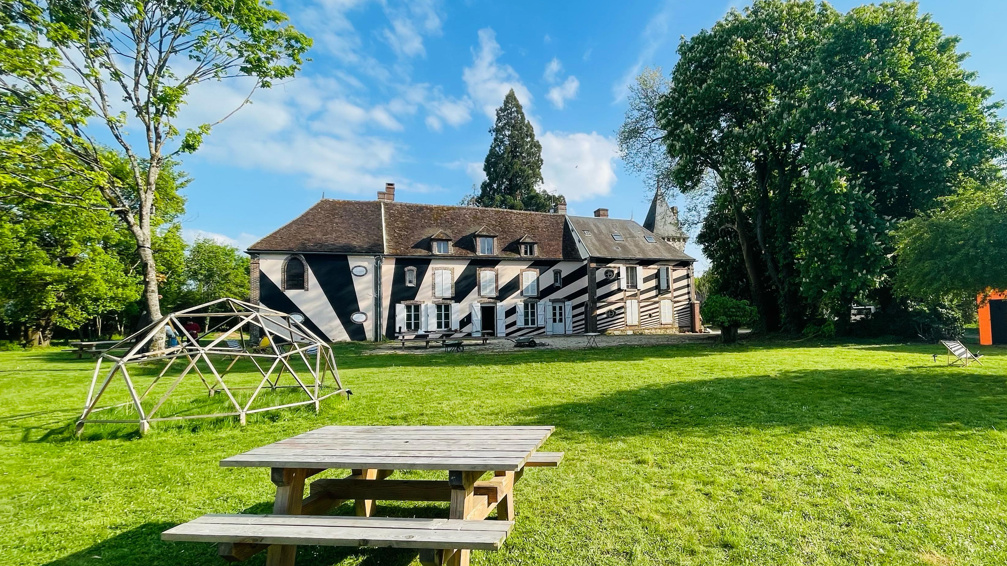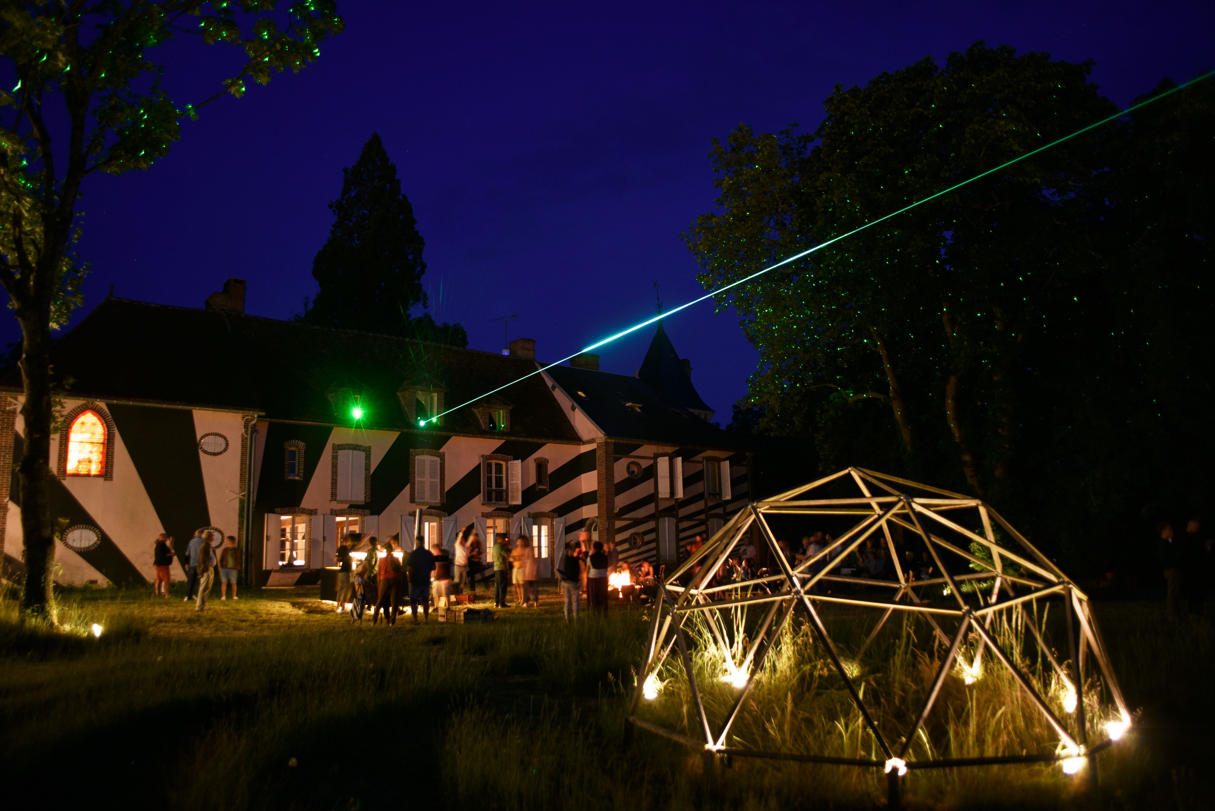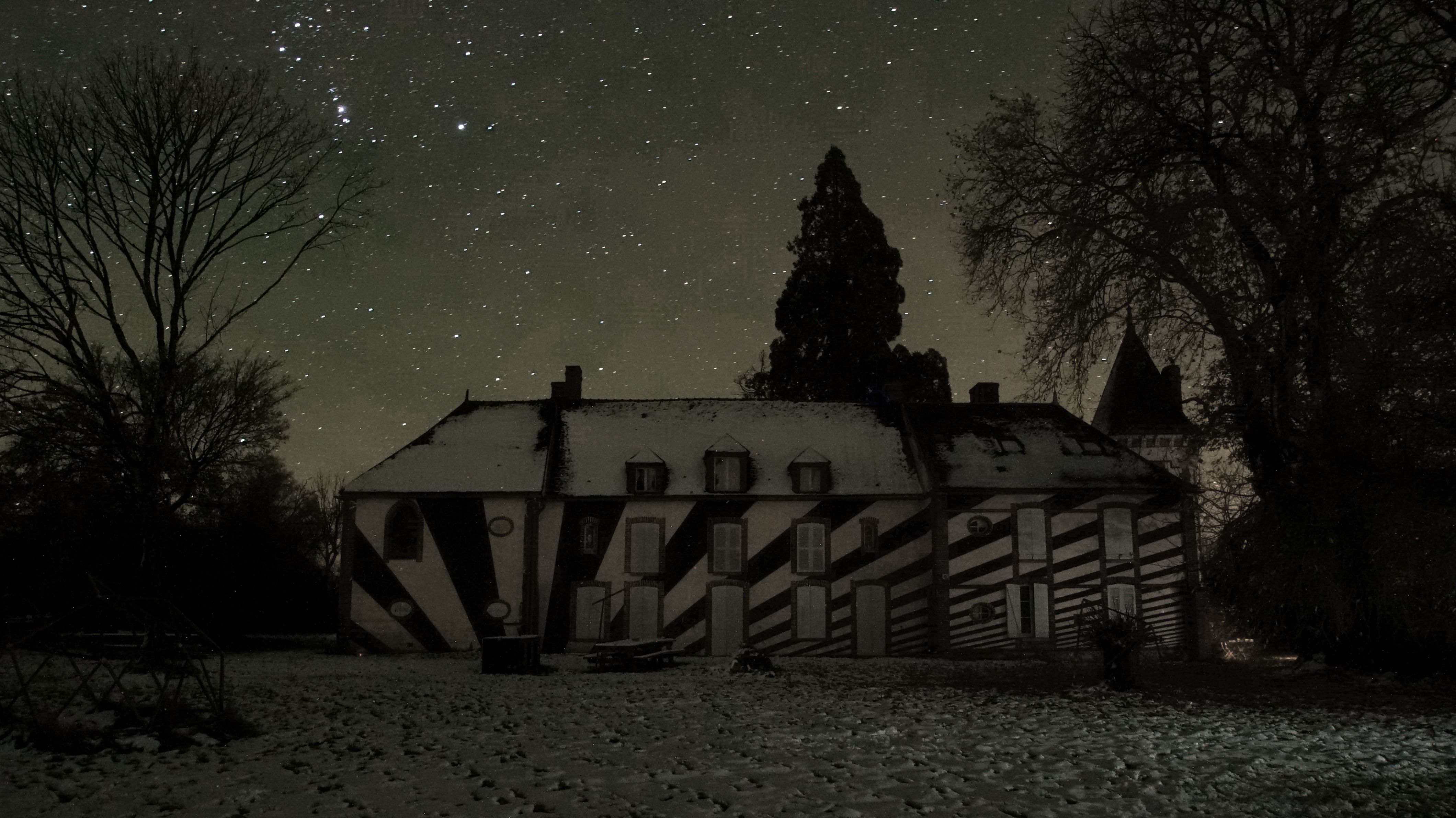 Zebra is a permanent graphic installation designed for the façade of the 1024-manor house in Burgundy. The installation was created with MadMapper, using digital tools to lay the groundwork for the design. The pattern, composed of black and white stripes, was first projected and warped live: the projection was then used as a template for the mural painting. Zebra's graphics follow the lines of the mansion's facade, in keeping with the building's modenature.
